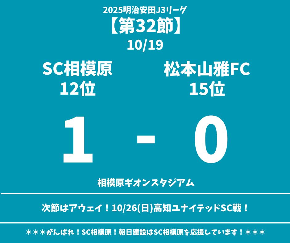 ☆2025 J3リーグ第32節 SC相模原(12位)1-0松本山雅FC(15位)