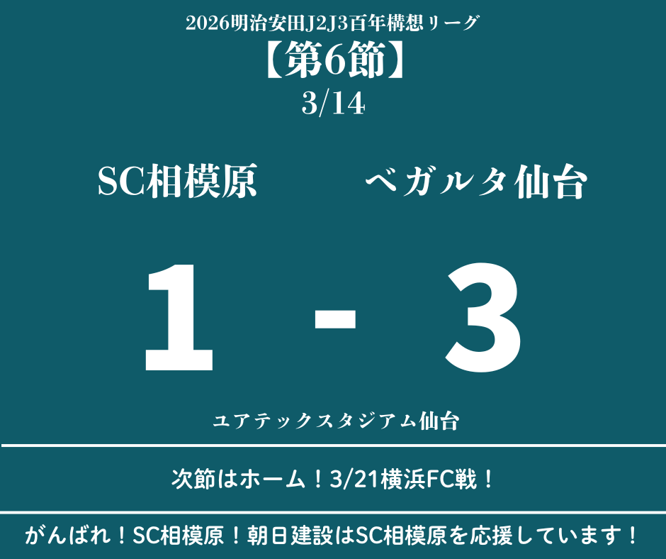 ☆2026 J2J3百年構想リーグ第6節 SC相模原1-3ベガルタ仙台
