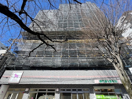 ☆相模原市中央区の店舗兼自宅併用賃貸マンション | 【グランメールOKUURA】(1995年竣工物件)の大規模修繕工事-足場架け-