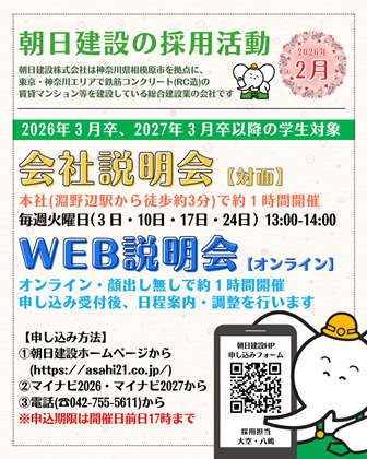 ☆2026年2月の会社説明会(対面・オンライン)のお知らせ