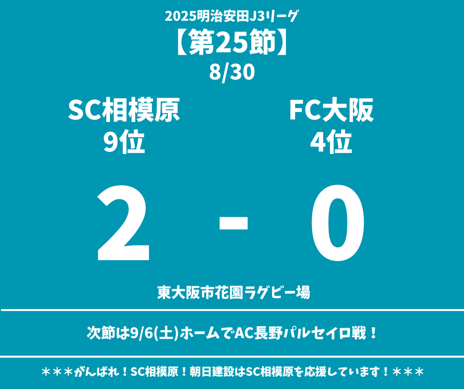 ☆2025 J3リーグ第25節 SC相模原(9位)2-0FC大阪(4位)