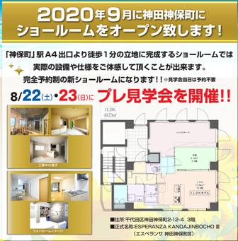 8月22・23日(土日)で、神田ショールームのプレオープンを行います。