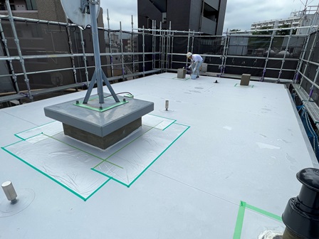☆賃貸マンション|大規模修繕 横浜市神奈川区反町【シャンティベルテ】屋上防水工事の様子
