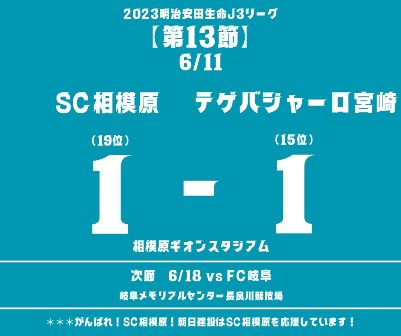 ☆2023 J3リーグ第13節 SC相模原1-1テゲバジャーロ宮崎