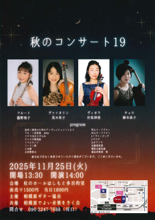 ☆11月25日に「秋のコンサート19」を開催いたします!