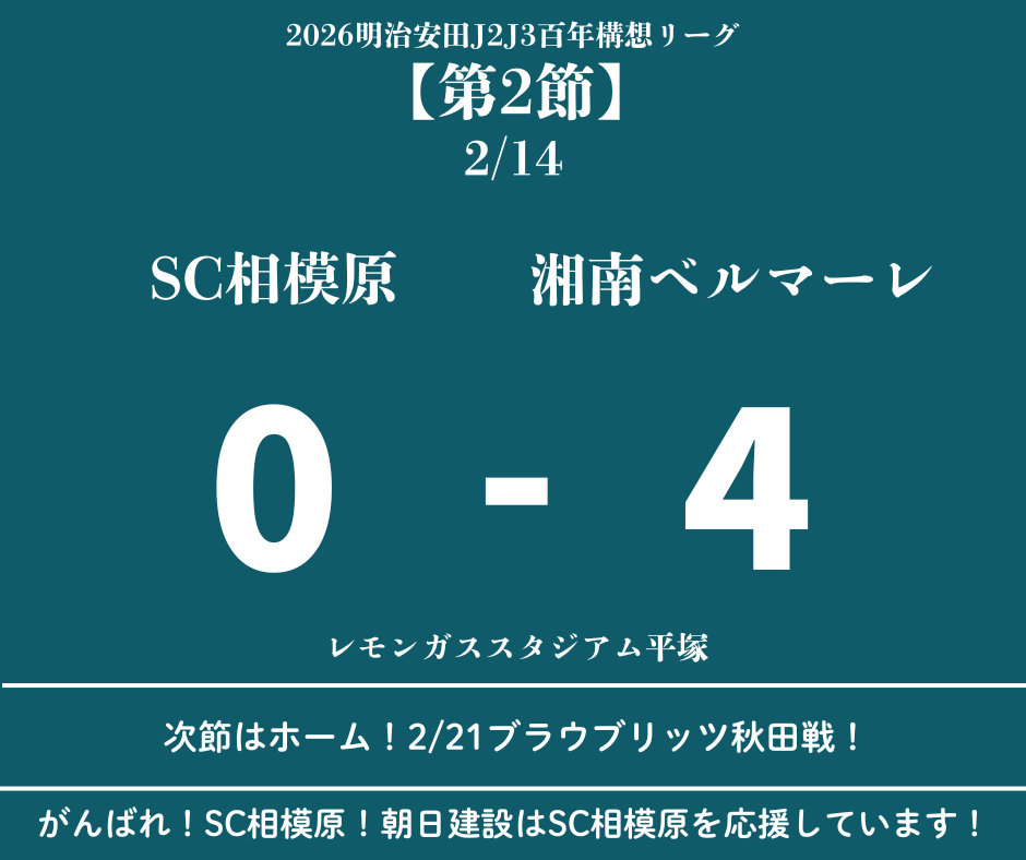 ☆2026 J2J3百年構想リーグ第2節 SC相模原0-4湘南ベルマーレ