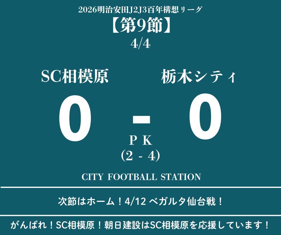 ☆2026 J2J3百年構想リーグ第9節 SC相模原0-0(PK2-4)栃木シティ