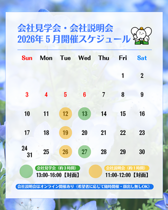 ☆2026年5月の会社見学会(対面)&会社説明会(対面・オンライン)のお知らせ